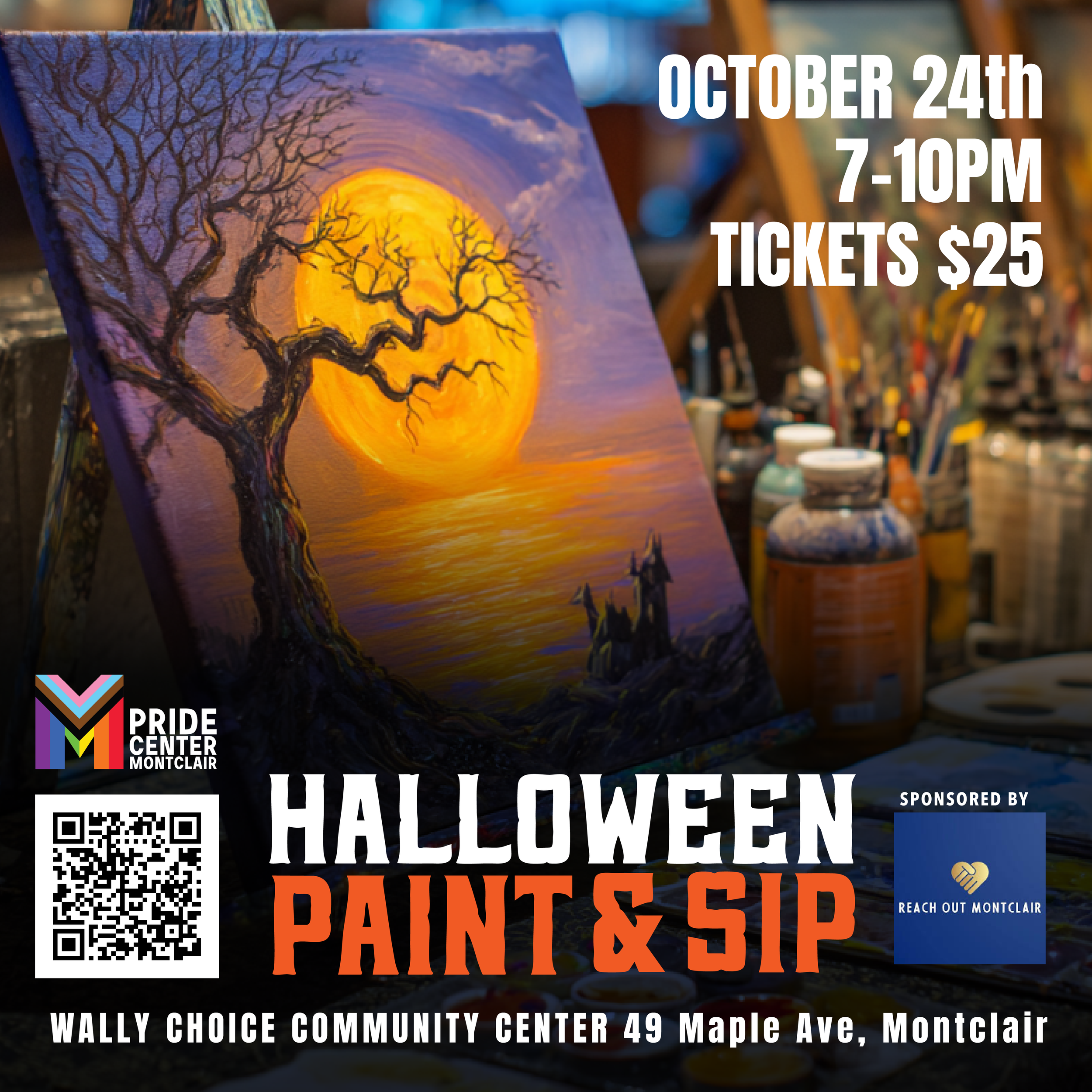 Get into the spooky spirit with a night full of painting, sipping, music by Hey Jersey Entertainment, light bites, and Halloween fun — all while supporting an incredible cause, the Pride Center of Montclair.